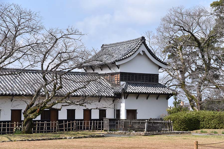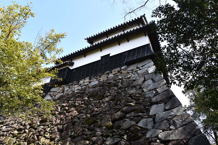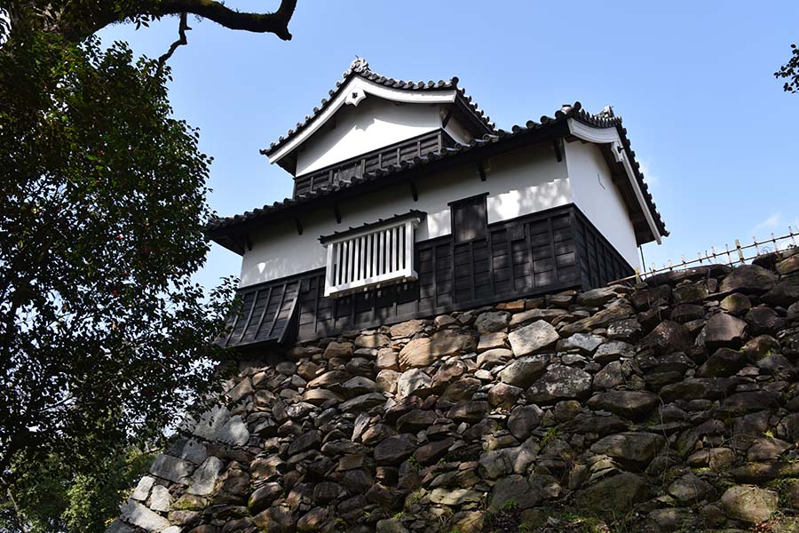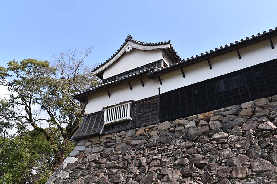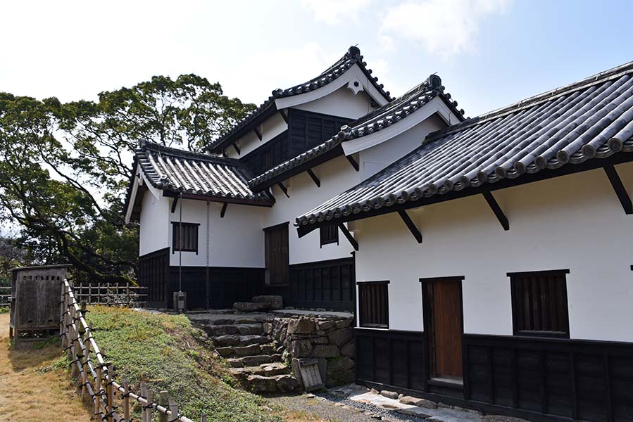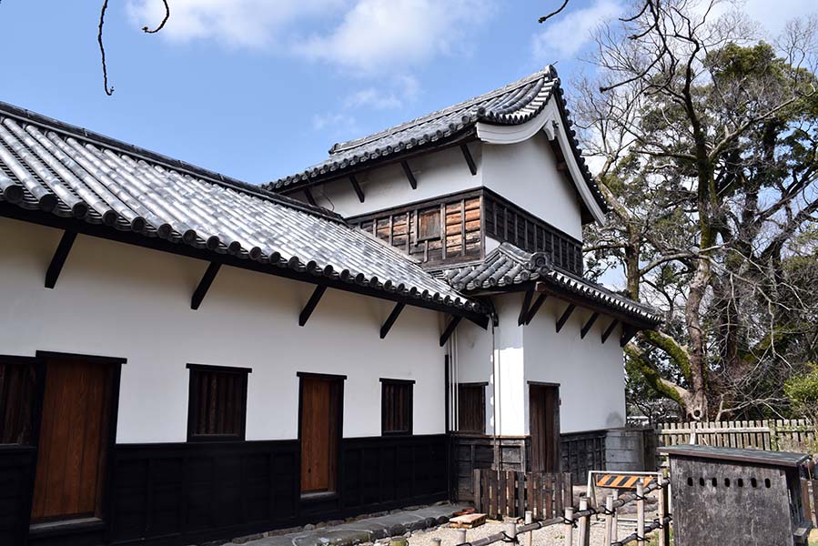 上記の多門櫓の南側に接続している西隅櫓。多門櫓同様、白漆喰に下見板張りの二重櫓で隅部にも石落としが設けられている。こちらも重要文化財に指定されている。