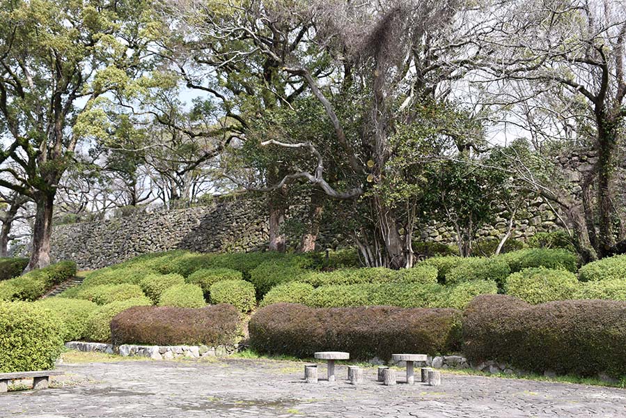 主郭部の南西部に位置する南二の丸跡。南の丸とも呼ばれている。虎口は北側の1ヶ所のみの独立性の高い曲輪で、隅部に二重櫓を設け、その間を多門櫓で繋いだ堅固な造りになっている。北隅櫓は復元だが、西隅櫓と多門櫓は現存している。