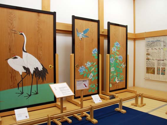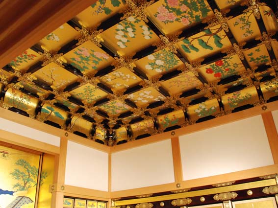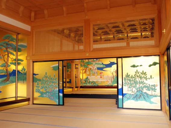 物語の絵が、天井に花木の絵が復元されている。(18畳)