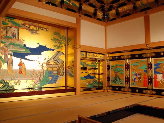 大広間で最も格式の高い部屋で、対面所として使われていた。北側に床の間と違棚、西側に