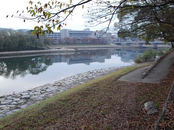 城域の北から東に流れる旭川。城の背後を守る天然の水堀の役割をしていた。