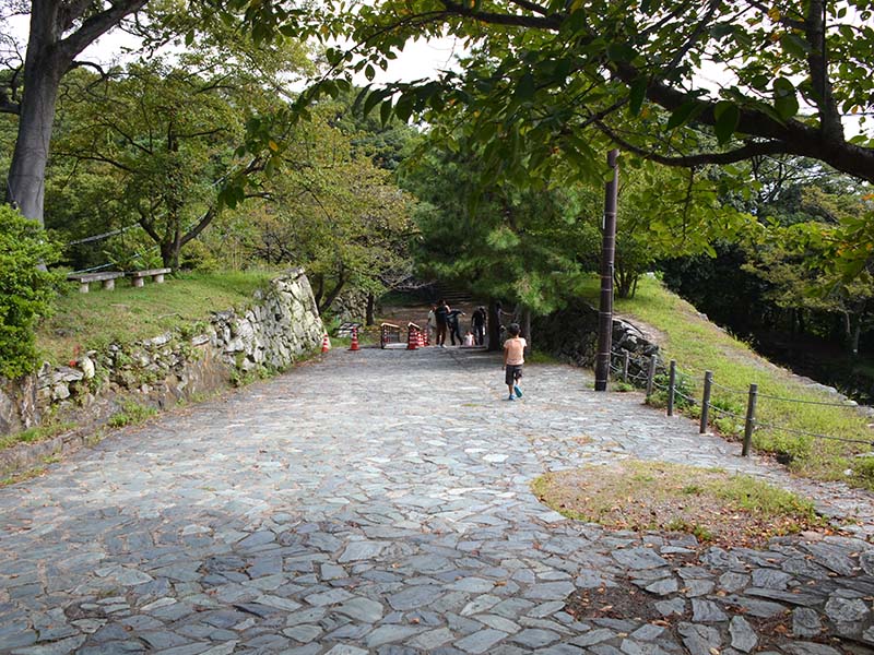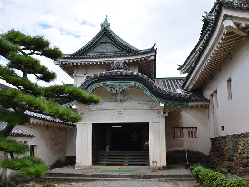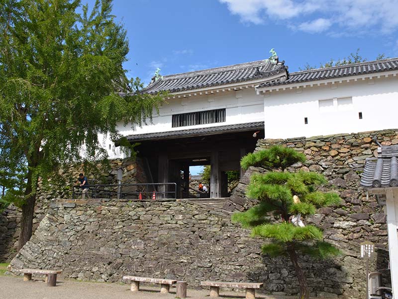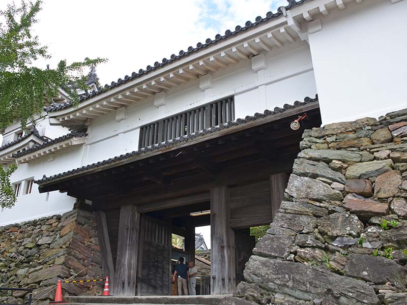 天守曲輪の南に設けられた楠門。総楠木造りの贅沢な門だったらしい。天守曲輪の建物は基本的には鉄筋コンクリートで復元されているが、楠門は唯一木造で復元されている。天守曲輪の東側の一の門に対して、天守二之御門とも呼ばれていた。