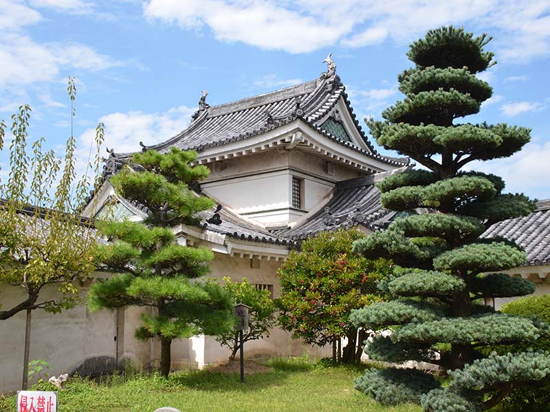 本丸の南西隅、楠門に隣接する二之門櫓。特徴のある曲線状の狭間も復元されている。