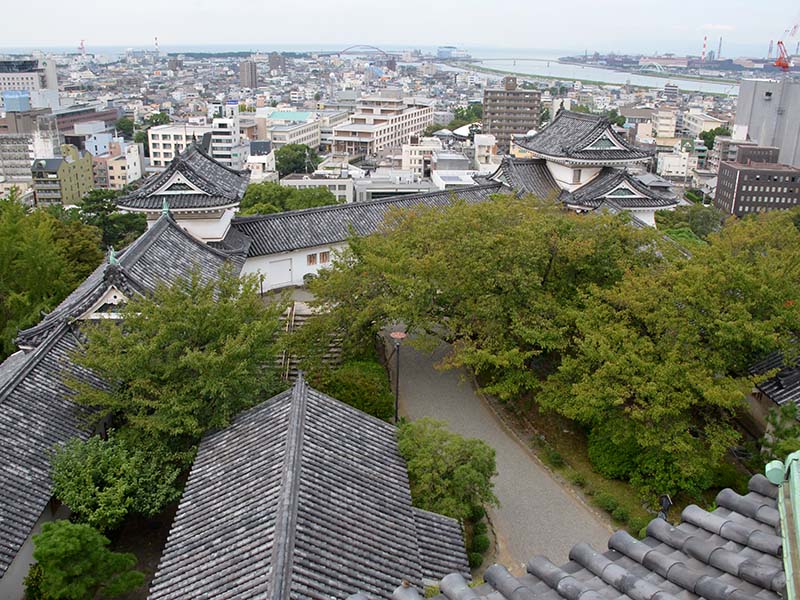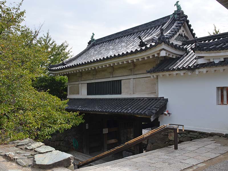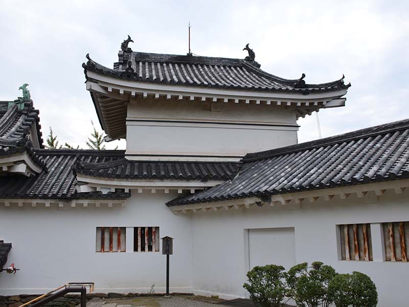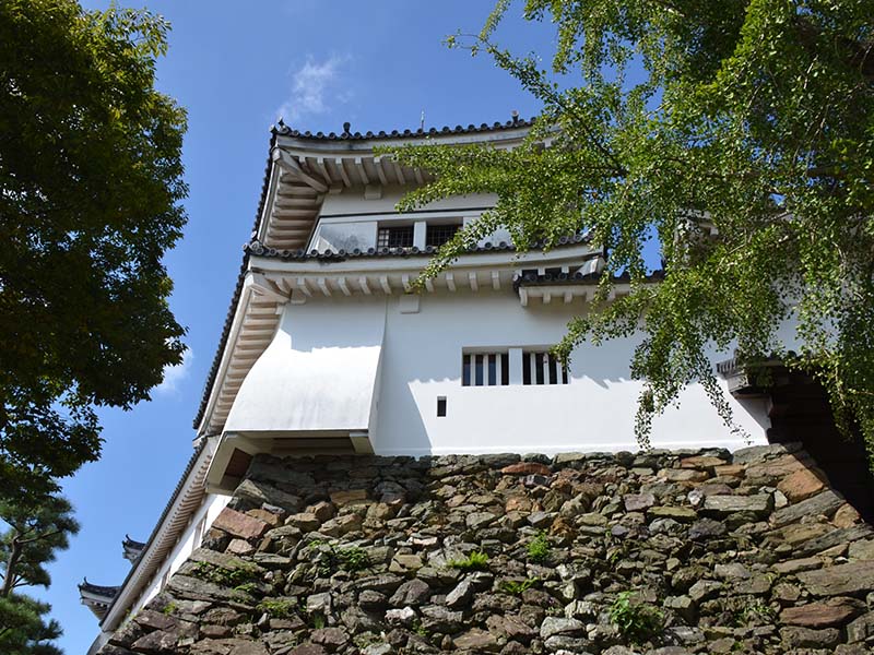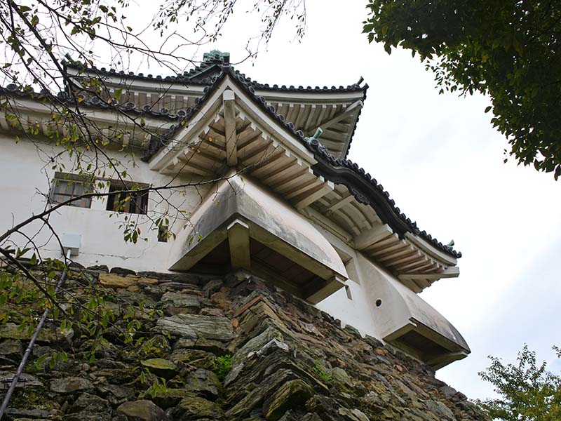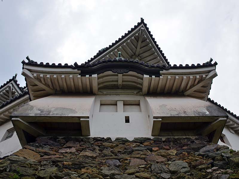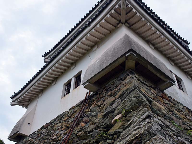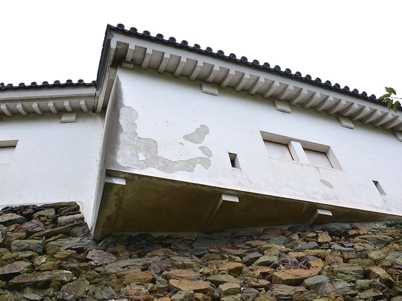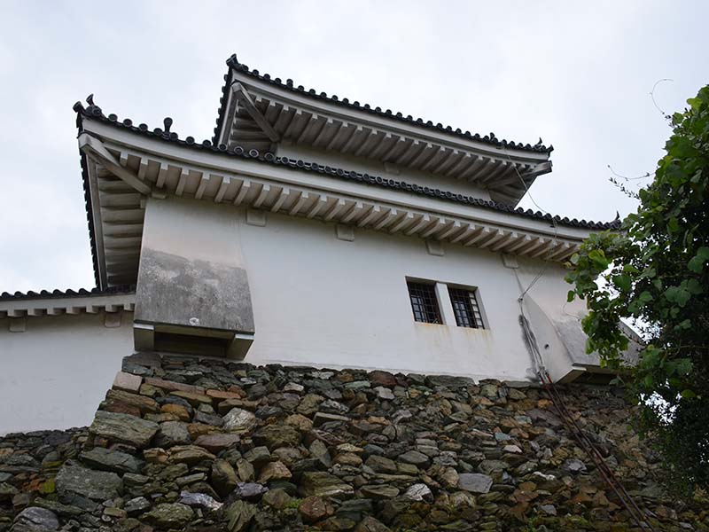 本丸の北西隅、戌亥の方角に位置する乾櫓。二層二階。ここにも曲線を伴う石落としが設けられている。