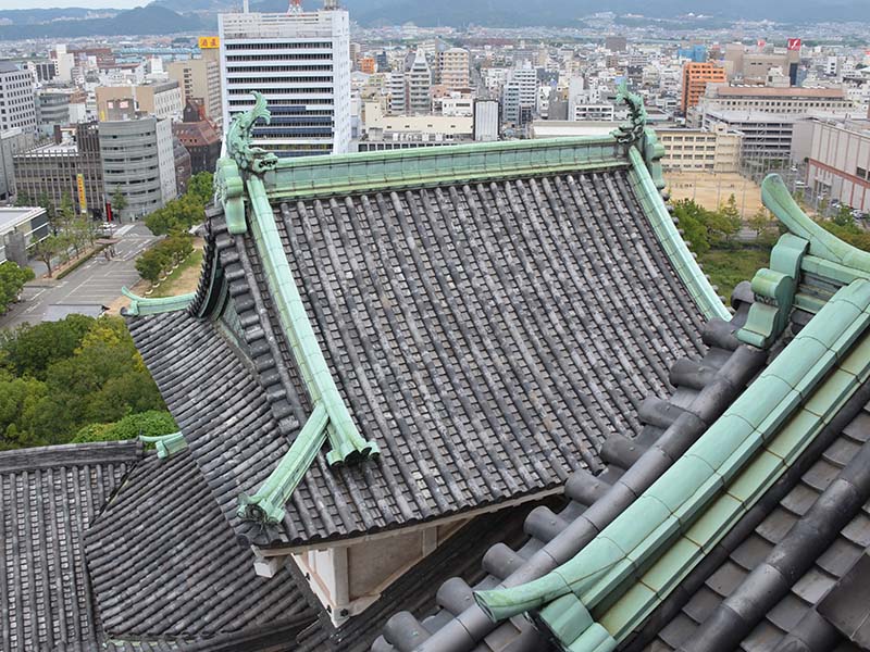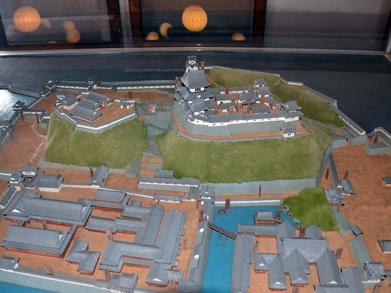 天守曲輪南東部に建てられている三層三階の大天守。不整形な天守台石垣に合わせて、一重目は菱形で築かれている。幕末の再建天守を見事に復元してあるが、多くの破風が設けられた装飾にとんだ天守だった事が分かる。内部は基本板張りで、最上階のみ畳敷きとなっていた。北側の小天守を経由して入る造りになっている。